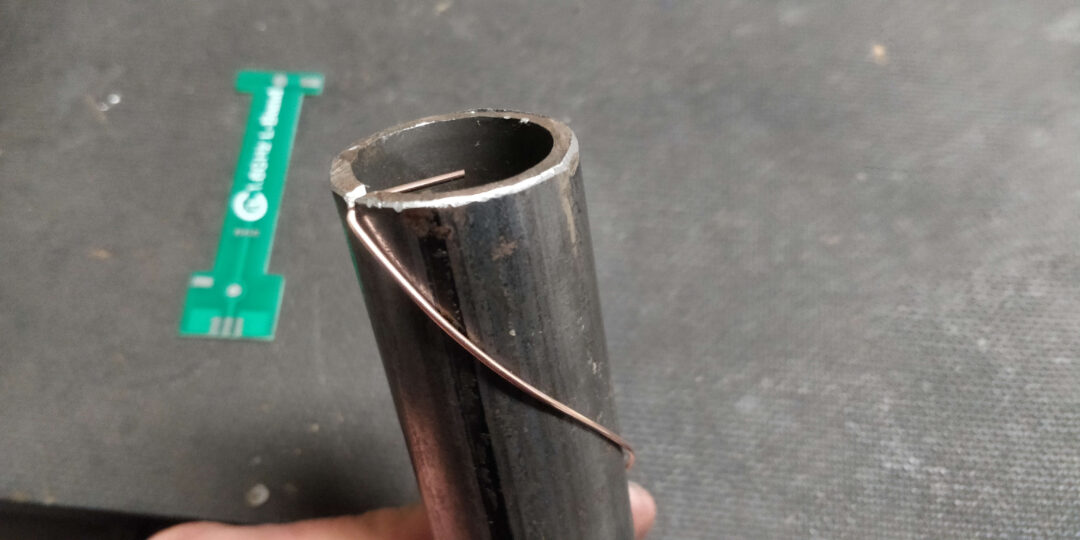 To make a proper radius, I used a 25mm diameter pipe and cut a notch to hold the wire in place.